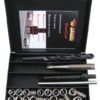 Bu diş onarım seti, diş üzerinde doğrudan onarım yapmak için çeşitli yardımcı araçlar içerir: kılavuz delik matkabı, insert dişi için genişletilmiş ölçülü el diş açma tarağı, insert yerleştirme aracı, kırma pimi (tang breaker) ve paslanmaz çelik tel diş insertleri.